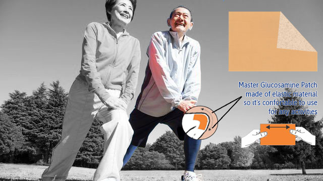 MASTER Glucosamine patch contains Glucosamine Hydrochloride that used to reduce joint pain. It also contains Menthol adn Nonivamide wich has analgesic effects, combination of Glucosamine, Menthol and Nonivamide makes a synergistic effect.